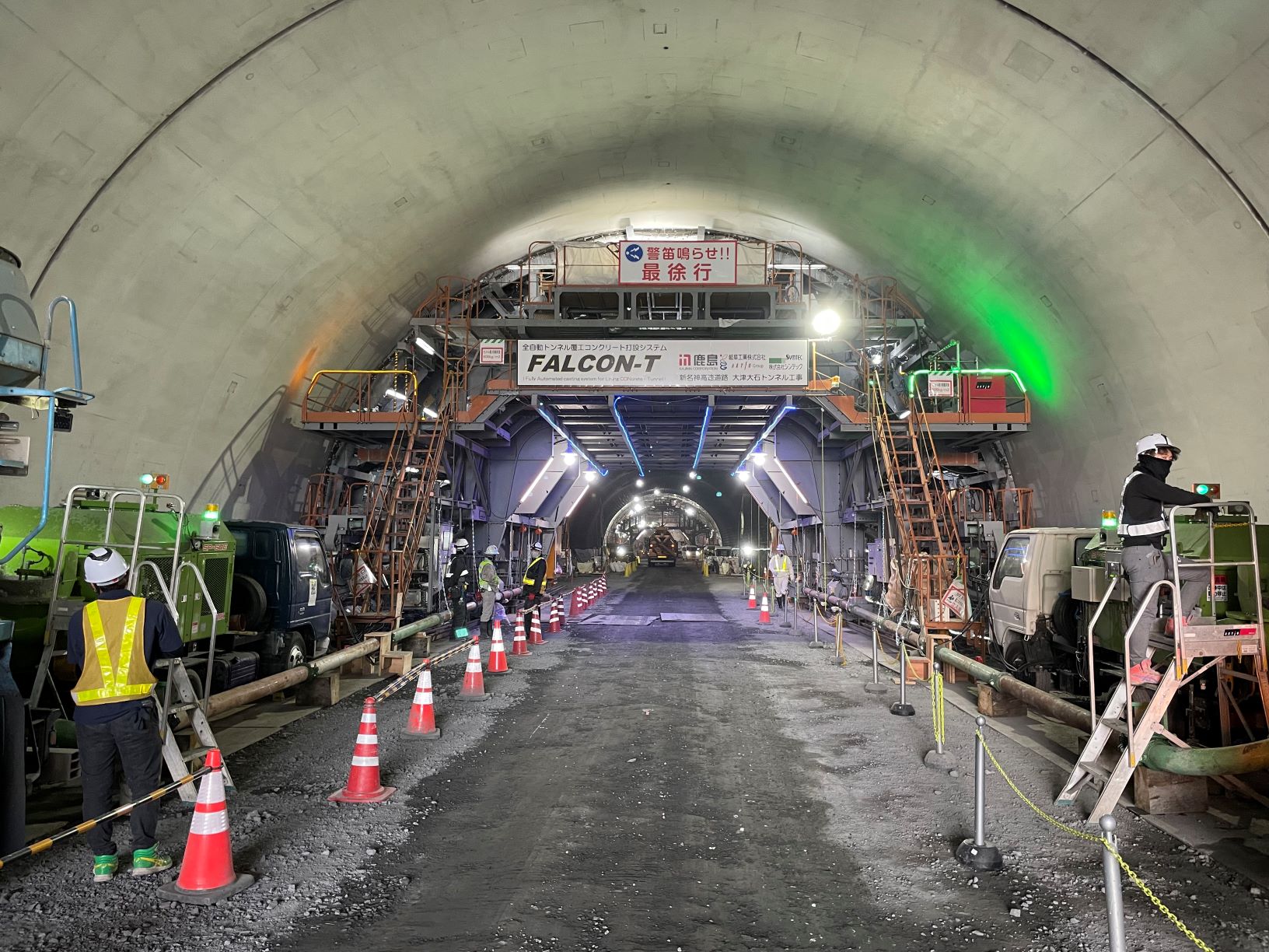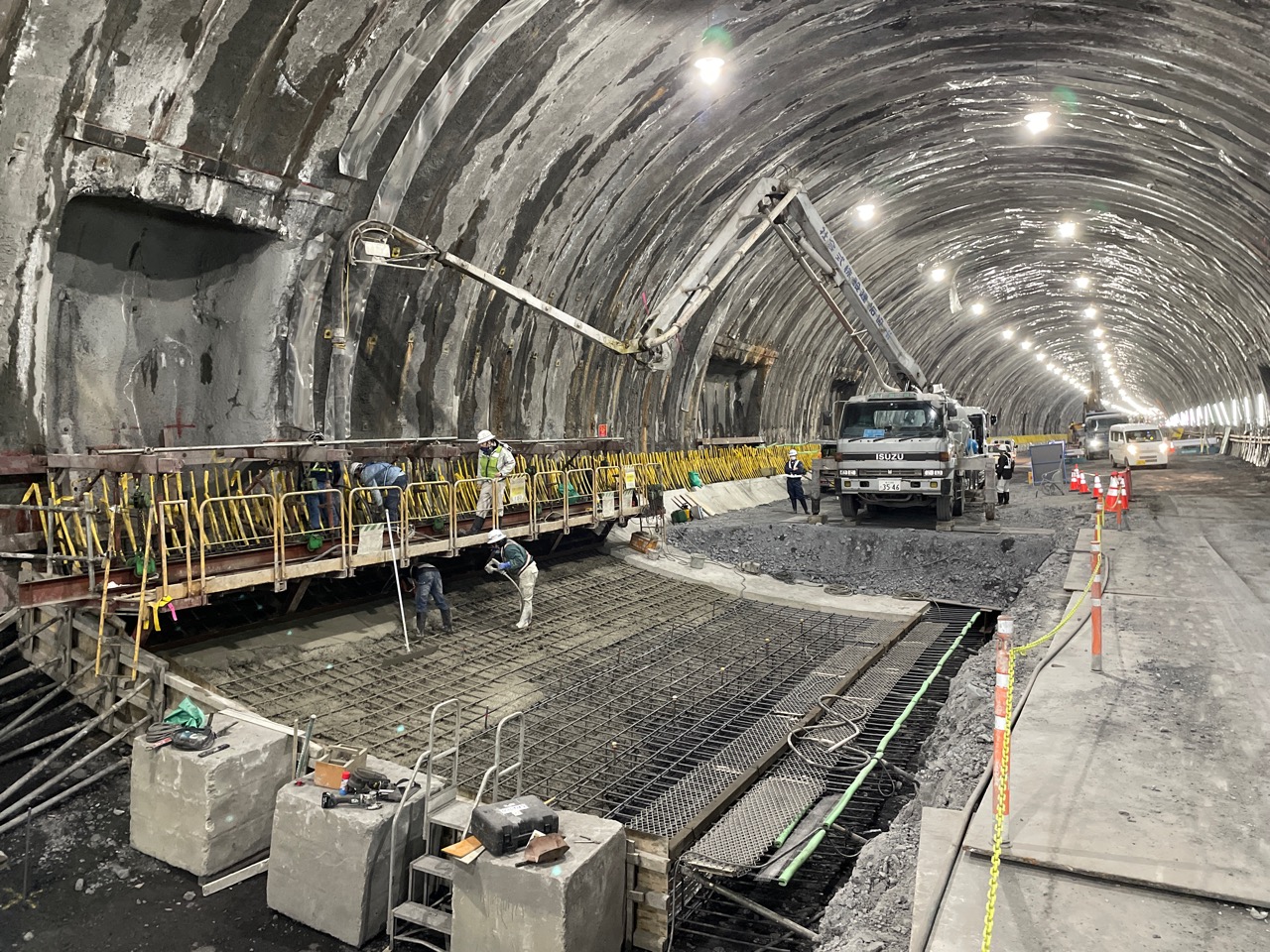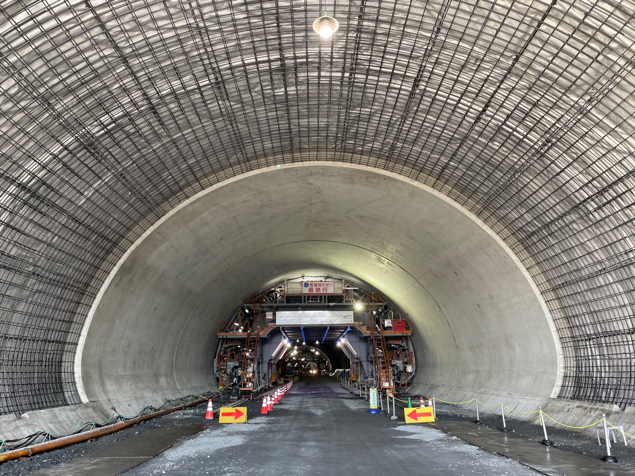 宮内 上り線は貫通後に東坑口側の施工を行うため、作業用道路として使用する必要がありましたが、3車断面で進めると工期的な面で非常に厳しくなることから、小断面で掘削し、時間を稼ぎました。結果として、上り線を一度掘削しているので全体の地質や破砕帯等が把握できている点や、作業坑から拡幅掘削のための事前補強も行っていることから、より安全に施工が出来るものと考えていますが、更に安全第一で工事を進めていきます。